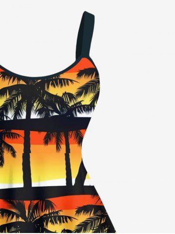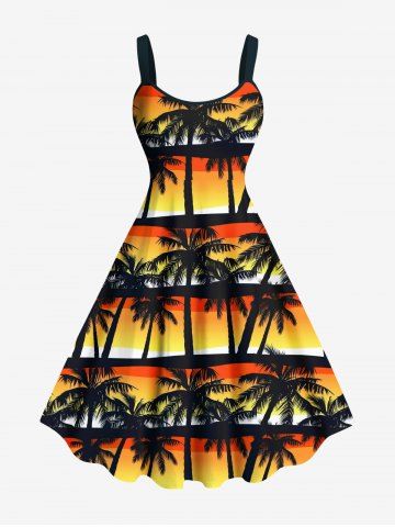 Robes Graphiques > Robe Débardeur Hawaïen Ombrée Cocotier Imprimé en Blocs de Couleurs de Grande Taille