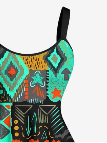 Robe débardeur hawaïenne à imprimé ethnique grande taille - Vert - Vert