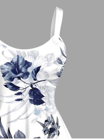 Robes Graphiques > Robe débardeur hawaïenne à imprimé feuilles et fleurs d'hibiscus grande taille