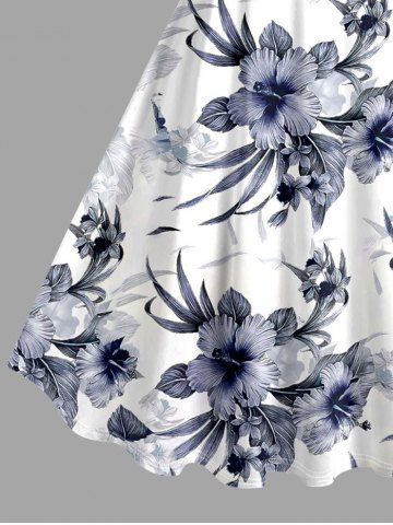 Robe débardeur hawaïenne à imprimé feuilles et fleurs d'hibiscus grande taille - Blanc - Blanc