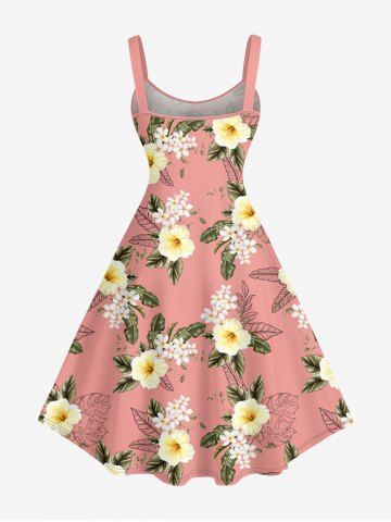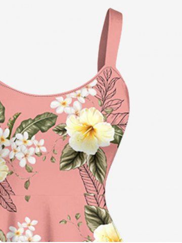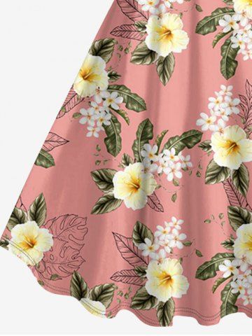 Robe débardeur hawaïenne à imprimé feuilles tropicales et fleurs d'hibiscus grande taille - Rose - Rose