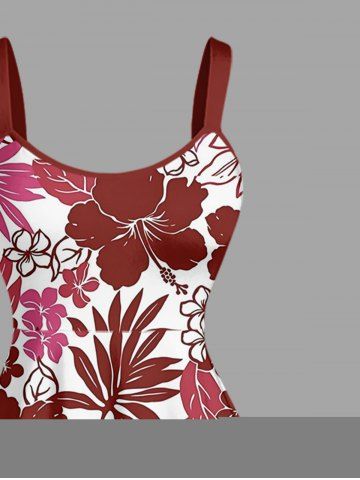 Robe débardeur hawaïenne à imprimé feuilles tropicales et fleurs d'hibiscus grande taille - Rouge Vineux - Xs