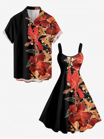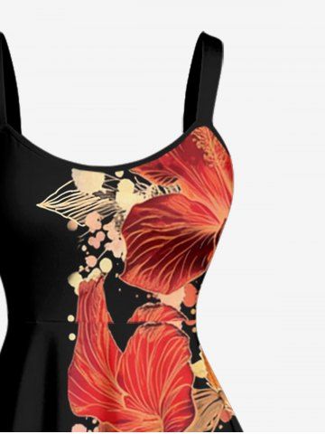 Robe débardeur hawaïenne à imprimé fleurs et feuilles grande taille - Noir - Noir