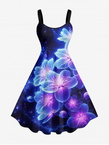 Robes Graphiques > Robe débardeur hawaïenne à imprimé fleurs galaxie grande taille