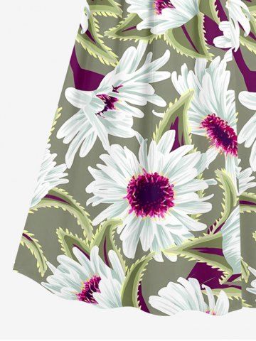 Robe débardeur hawaïenne à imprimé floral et feuilles grande taille. - Vert Clair - Vert Clair