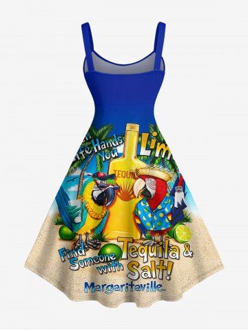 Robe débardeur hawaïenne à imprimé perroquet, bouteille, cocotier et citron, grande taille - Bleu Ciel - Bleu Ciel