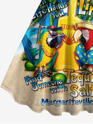 Robes Graphiques > Robe débardeur hawaïenne à imprimé perroquet, bouteille, cocotier et citron, grande taille