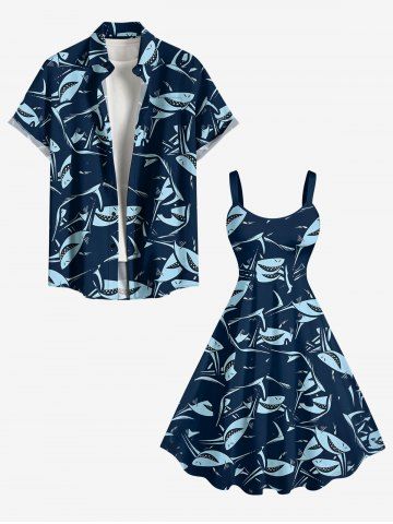 Robe débardeur hawaïenne à imprimé requins grande taille - Bleu Profond - 5x