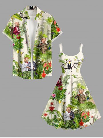 Robe débardeur hawaïenne à imprimé singes, oiseaux, fleurs tropicales et feuilles, grande taille - Vert Profond - 1x