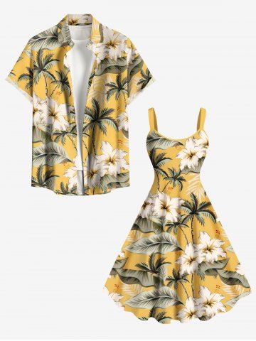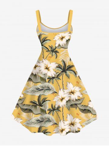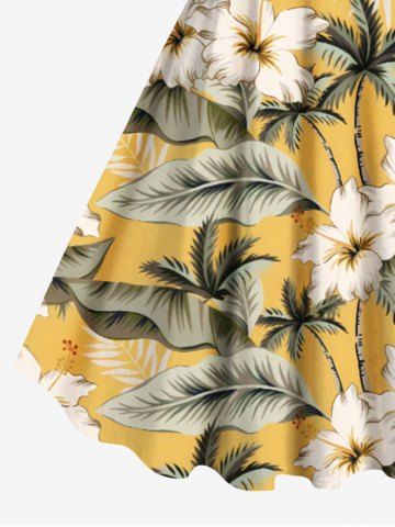 Robe débardeur hawaïenne à imprimé tropical de cocotiers et de feuilles, grande taille - Jaune - Jaune
