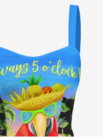 Robe débardeur hawaïenne à lacets avec imprimé perroquet, cocotier et fleurs de paysage marin - Bleu Ciel - Bleu Ciel