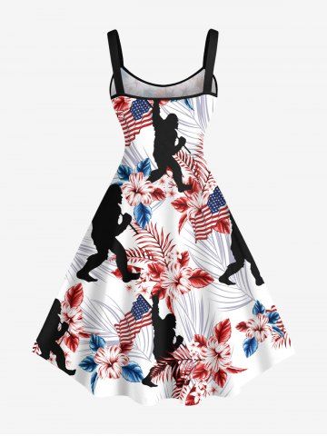 Robes Graphiques > Robe débardeur hawaïenne grande taille à fleurs tropicales et imprimé patriotique drapeau américain gorille