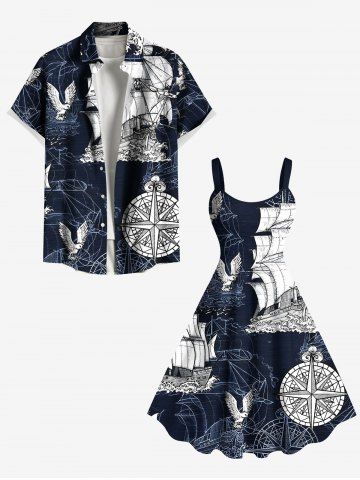 Robe débardeur hawaïenne grande taille à imprimé aigle et gouvernail de croisière - Bleu Profond - Xxs