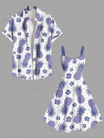 Robe débardeur hawaïenne grande taille à imprimé ananas et fleurs d'hibiscus - Blanc - Blanc