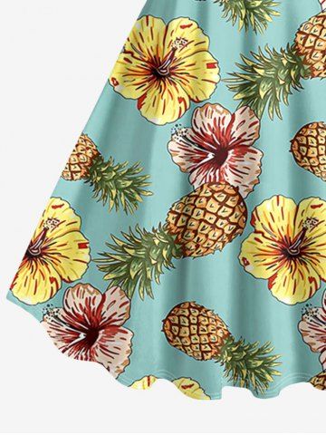 Robe débardeur hawaïenne grande taille à imprimé ananas et hibiscus - Vert Clair - Vert Clair