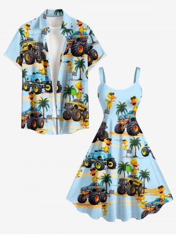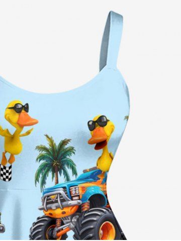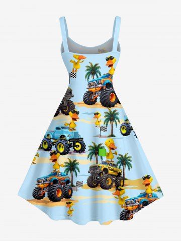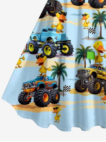 Robe débardeur hawaïenne grande taille à imprimé camions, canards et cocotiers - Bleu Clair - Bleu Clair