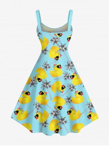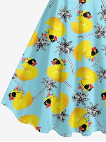 Robe débardeur hawaïenne grande taille à imprimé canard et cocotier - Turquoise - Turquoise