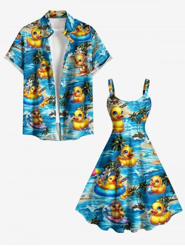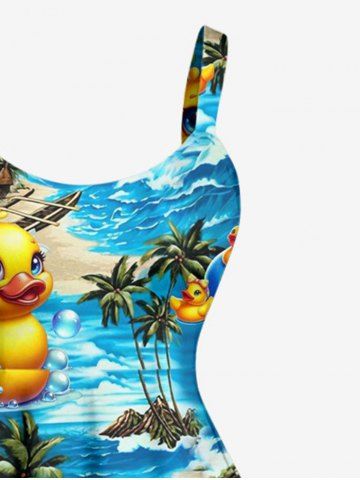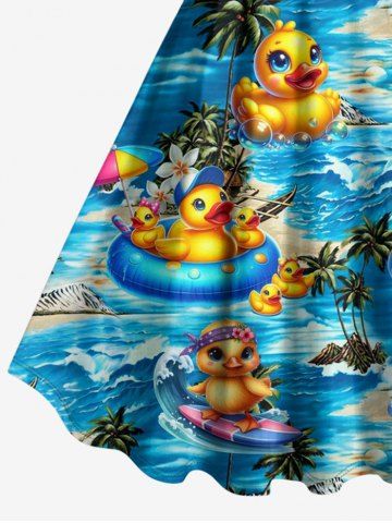 Robe débardeur hawaïenne grande taille à imprimé canards, cocotiers et fleurs - Bleu - Bleu