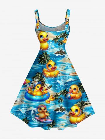 Robes Graphiques > Robe débardeur hawaïenne grande taille à imprimé canards, cocotiers et fleurs