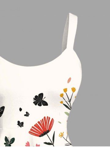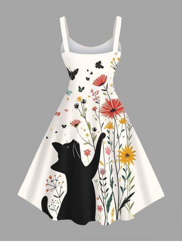 Robe débardeur hawaïenne grande taille à imprimé chat, fleurs et papillons - Blanc - Blanc