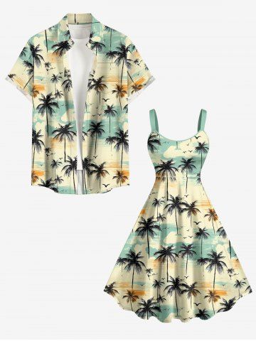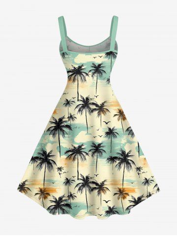 Robes Graphiques > Robe débardeur hawaïenne grande taille à imprimé cocotier, oiseau et nuage