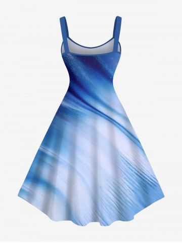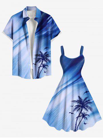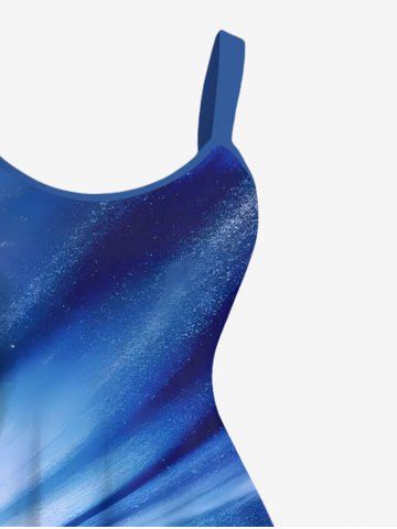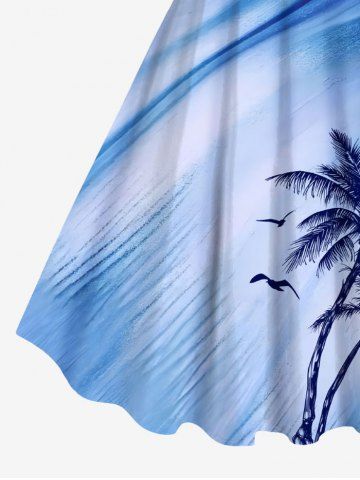 Robe débardeur hawaïenne grande taille à imprimé cocotiers et oiseaux ombrés - Bleu Clair - Bleu Clair