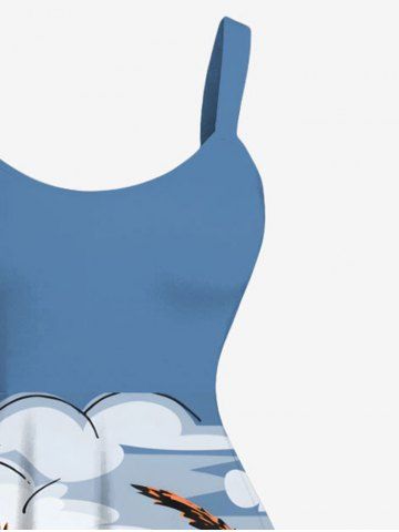 Robes Graphiques > Robe débardeur hawaïenne grande taille à imprimé cocotiers, nuages et paysage marin