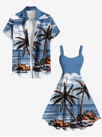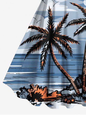 Robe débardeur hawaïenne grande taille à imprimé cocotiers, nuages et paysage marin - Bleu Clair - Bleu Clair