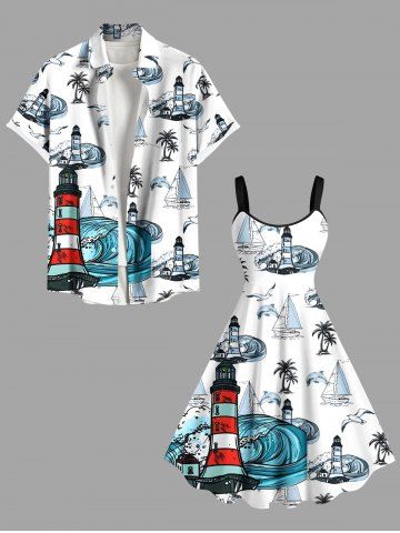 Robe débardeur hawaïenne grande taille à imprimé cocotiers, requins, bateau, vagues, phare, croisière - Blanc - Blanc