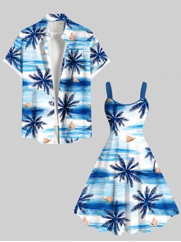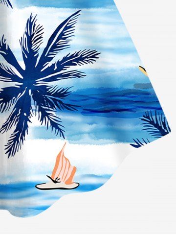 Robe débardeur hawaïenne grande taille à imprimé cocotiers, vagues et bateaux - Bleu Ciel - Bleu Ciel