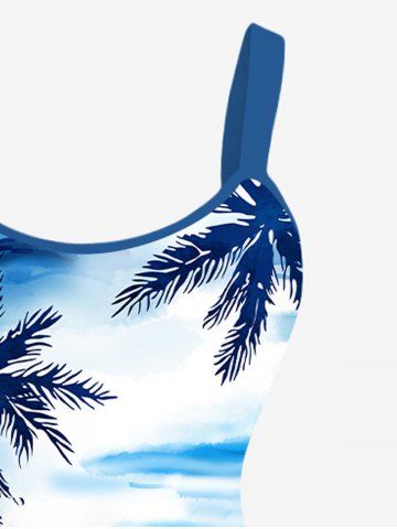 Robe débardeur hawaïenne grande taille à imprimé cocotiers, vagues et bateaux - Bleu Ciel - Bleu Ciel