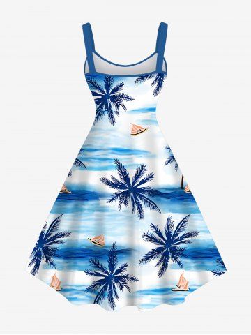 Robes Graphiques > Robe débardeur hawaïenne grande taille à imprimé cocotiers, vagues et bateaux