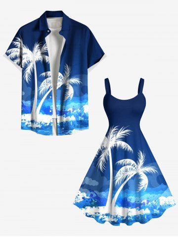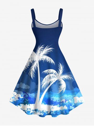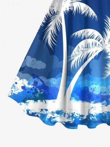 Robe débardeur hawaïenne grande taille à imprimé cocotiers, vagues et éclaboussures de peinture - Bleu Ciel - Bleu Ciel