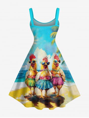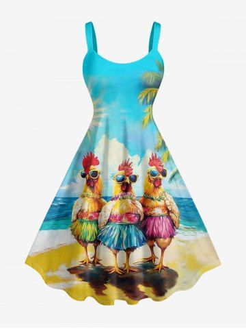 Robes Graphiques > Robe débardeur hawaïenne grande taille à imprimé coq, cocotier et soleil