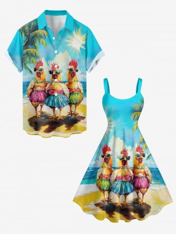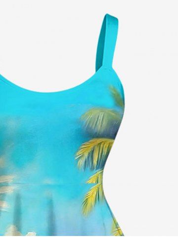 Robe débardeur hawaïenne grande taille à imprimé coq, cocotier et soleil - Bleu Ciel - Bleu Ciel