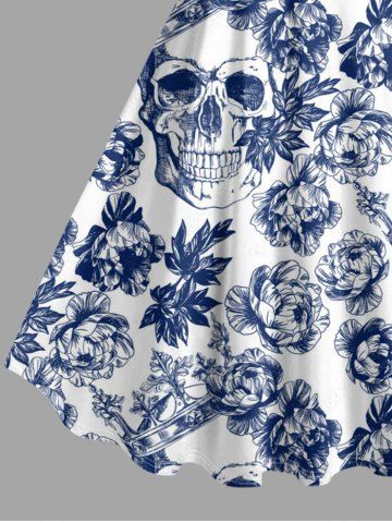 Robe débardeur hawaïenne grande taille à imprimé couronne, crâne et fleurs - Bleu Profond - 3x