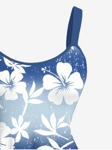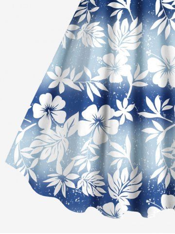 Robe débardeur hawaïenne grande taille à imprimé feuilles et fleurs d'hibiscus ombré - Bleu Clair - Bleu Clair