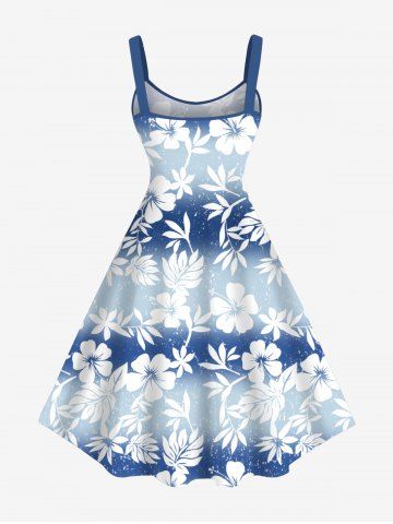Robes Graphiques > Robe débardeur hawaïenne grande taille à imprimé feuilles et fleurs d'hibiscus ombré