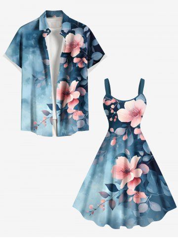Tie Dye Ombre Flowers Leaf Print Plus Size Matching Hawaii Beach Outfit For Couples