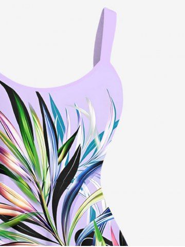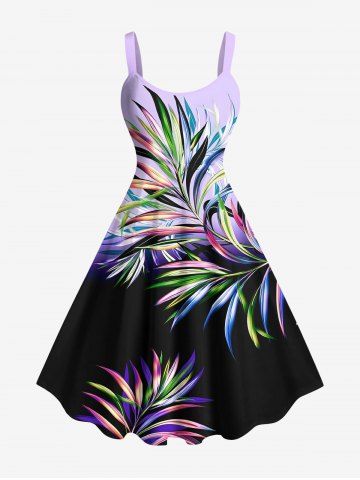 Robe débardeur hawaïenne grande taille à imprimé feuilles tropicales et blocs de couleurs ombrés - Violet Clair - Violet Clair