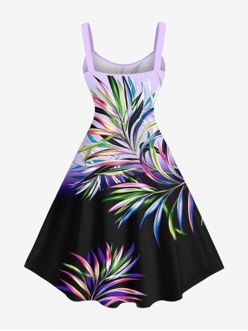 Robe débardeur hawaïenne grande taille à imprimé feuilles tropicales et blocs de couleurs ombrés - Violet Clair - Violet Clair