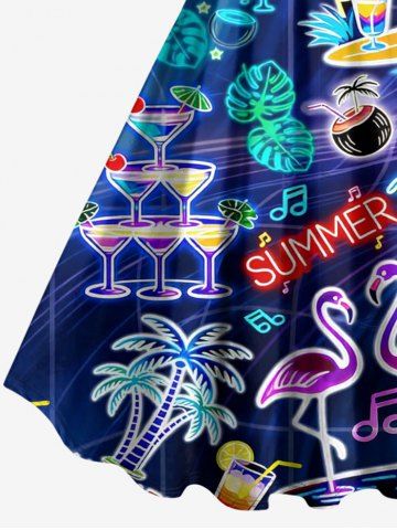 Robe débardeur hawaïenne grande taille à imprimé flamant rose et noix de coco - Bleu Profond - 6x