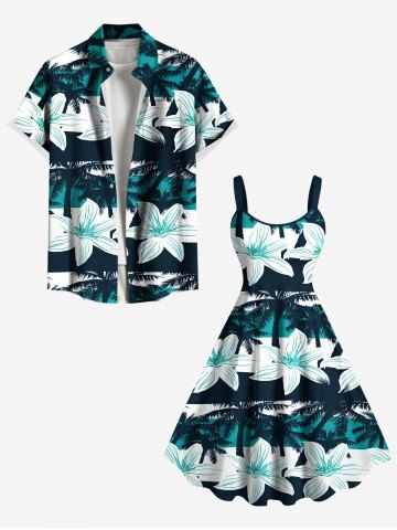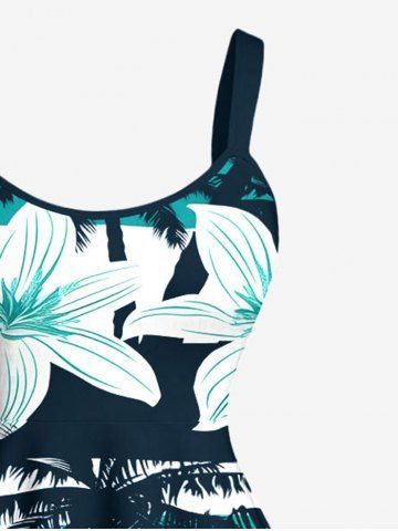 Robe débardeur hawaïenne grande taille à imprimé floral et cocotiers - Vert Profond - Xxs