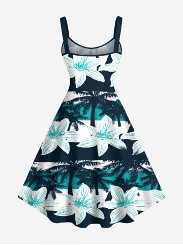 Robes Graphiques > Robe débardeur hawaïenne grande taille à imprimé floral et cocotiers