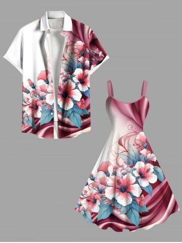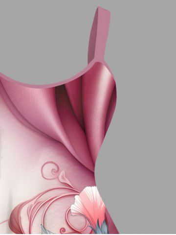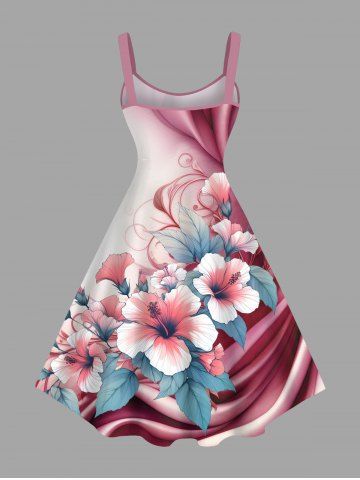 Robe débardeur hawaïenne grande taille à imprimé floral et feuilles d'hibiscus ombré colorblock - Rose Clair - Rose Léger