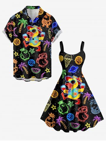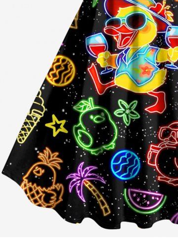 Robe débardeur hawaïenne grande taille à imprimé galaxie, étoiles, cocotiers, canards et pastèque - Noir - Noir