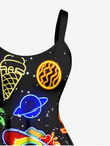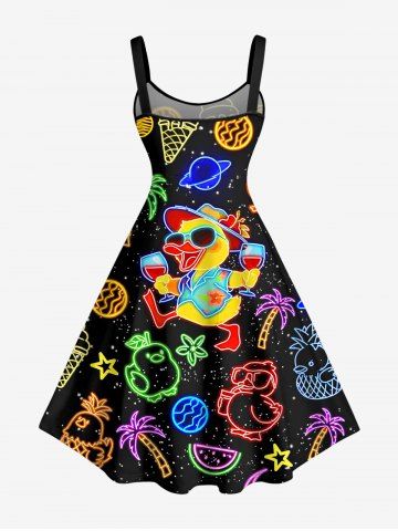 Robes Graphiques > Robe débardeur hawaïenne grande taille à imprimé galaxie, étoiles, cocotiers, canards et pastèque