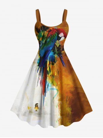 Robe débardeur hawaïenne grande taille à imprimé perroquet et éclaboussures de peinture colorblock - Brun Légère - Marron Clair
