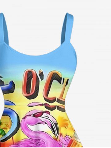 Robes Graphiques > Robe débardeur hawaïenne grande taille à imprimé perroquet, fleur, cocotier et horloge