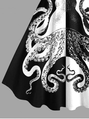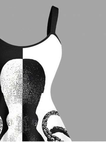 Robe débardeur hawaïenne grande taille à imprimé pieuvre bicolore contrasté - Noir - Noir